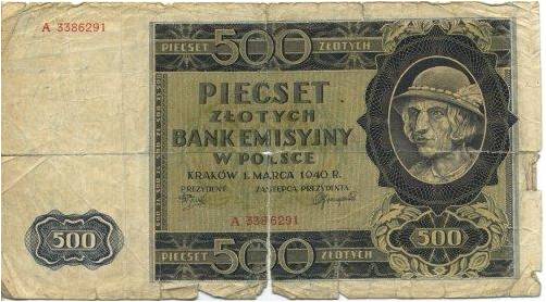 Банкнота в 500 «краковских злотых». 1940 г.