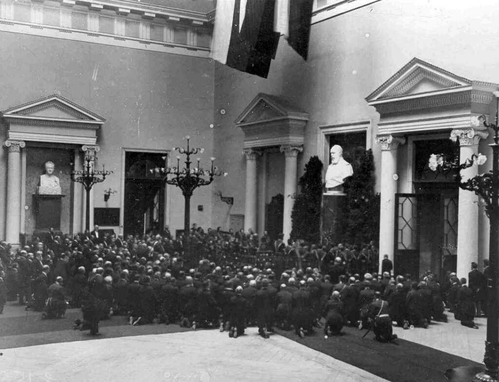 Молебен в главном зале Санкт-Петербургской Биржи в день открытия бюста императора Александра III