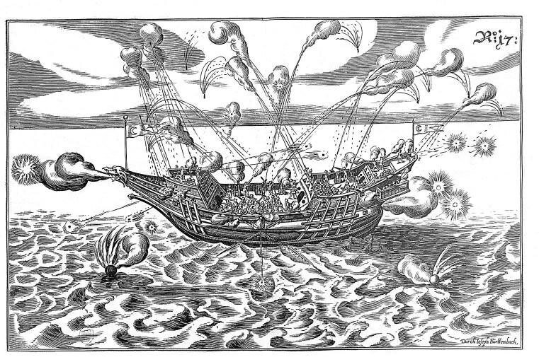 Оригинальная иллюстрация из издания: Фуртенбах Йозеф. Морская архитектура (Furtenbach, Joseph (1591-1667). Architectura Navalis). 1629.