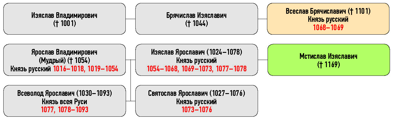 Генеалогическая схема к продолжению усобицы Всеслава Брячиславича и Мстислава Изяславича зимой 1066–1067 гг.