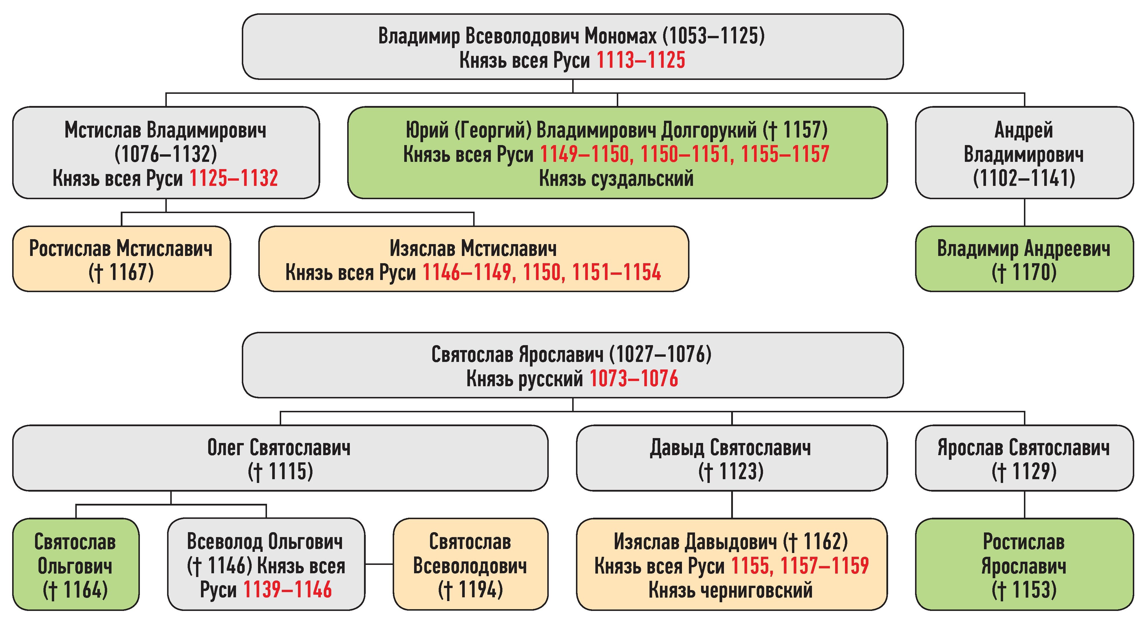 Генеалогическая схема к усобице Юрия Владимировича и Изяслава Мстиславича осенью 1152 г. — зимой 1153 г.