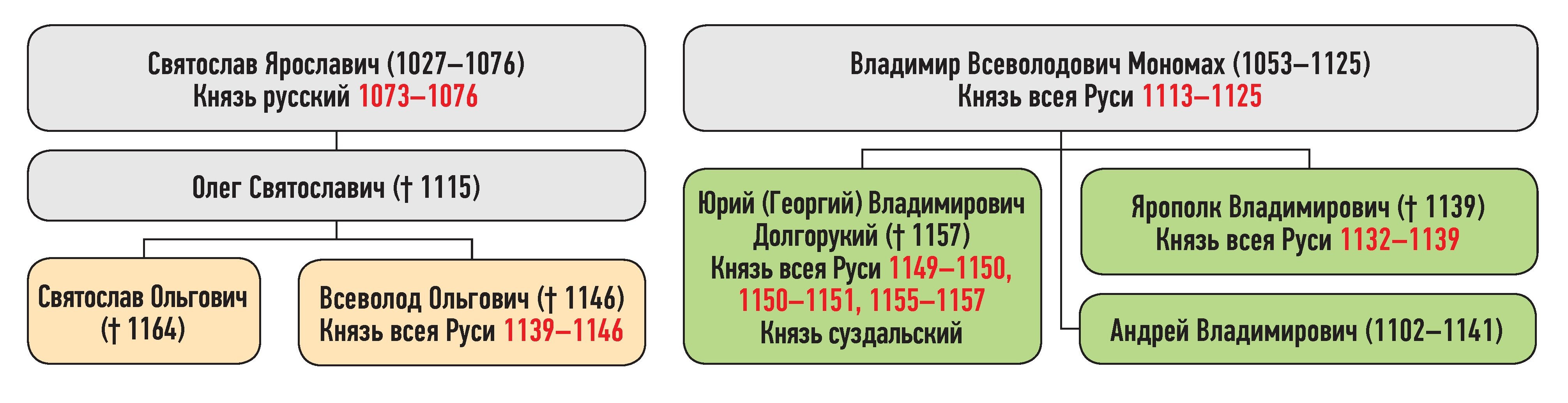 Всеволод и Святослав Ольговичи — сыновья Олега Святославича, Андрей Владимирович — сын Владимира Всеволодовича Мономаха