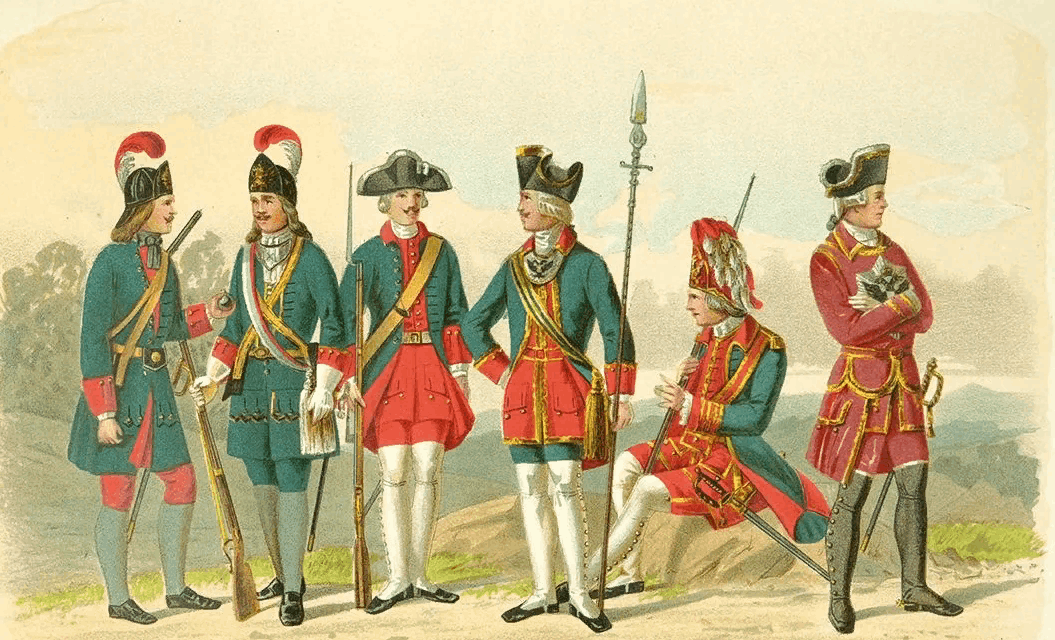 Полки Англии, Испании, Франции, Швеции, Австрии, Баварии, Саксонии, Пруссии