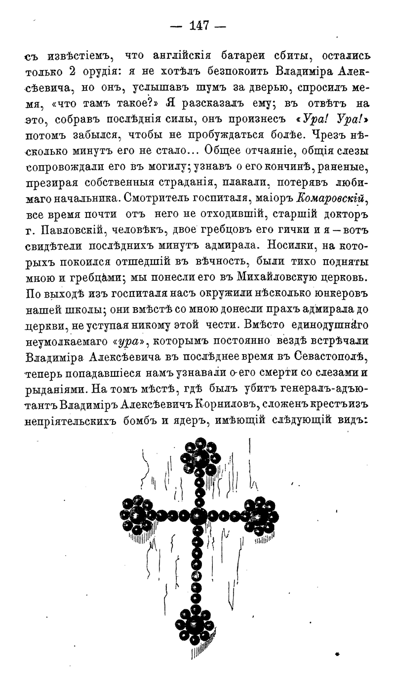 Крест из неприятельских бомб и ядер, сложенный на месте, где был убит генерал-адъютант Владимир Алексеевич Корнилов.
