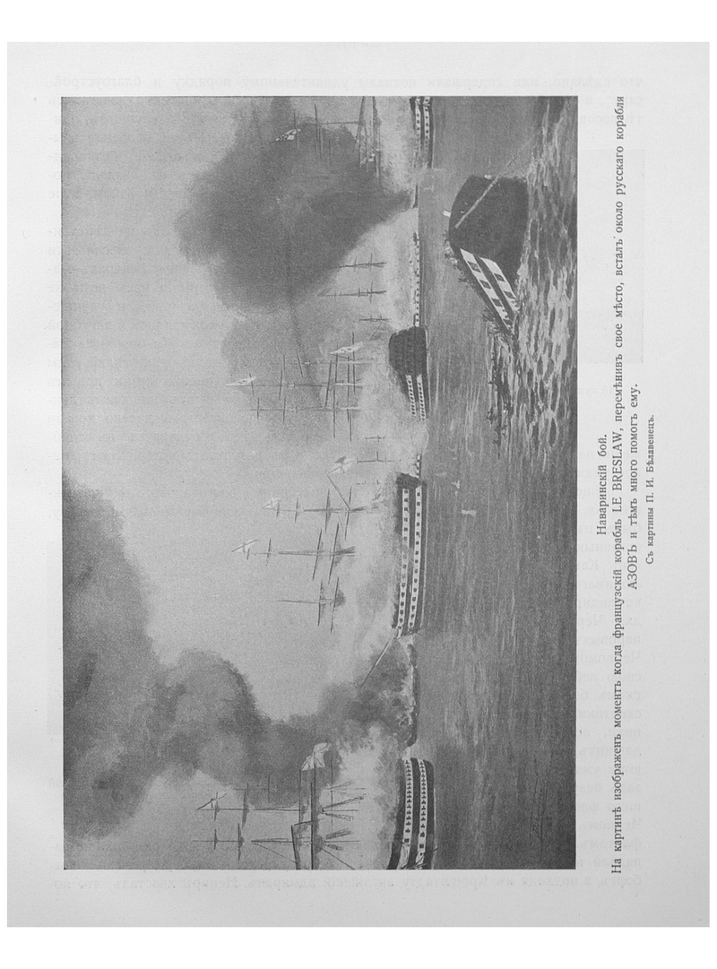 Наваринский бой. Изображен момент когда французский корабль LE BRESLAW , переменив свое место, встал около русского корабля АЗОВ и тем много помог ему.