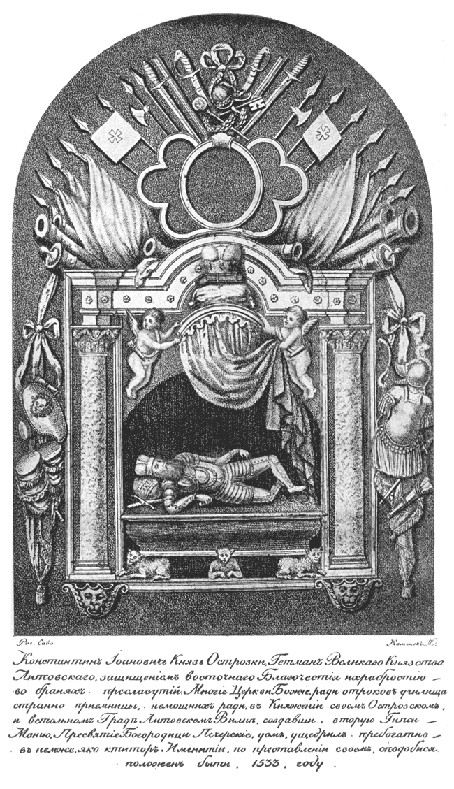 Надгробный памятник и надпись на захоронении князя Константина Ивановича Острожского
