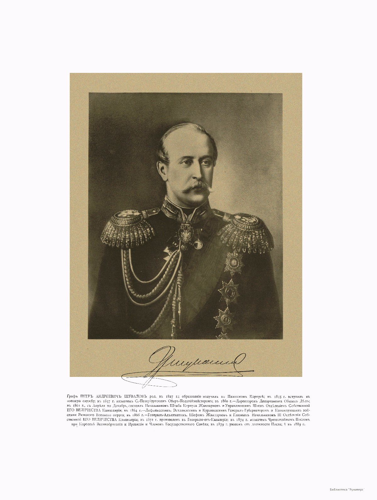 Шеф Жандармов Граф Петр Андреевич Шувалов, 1827-1889.