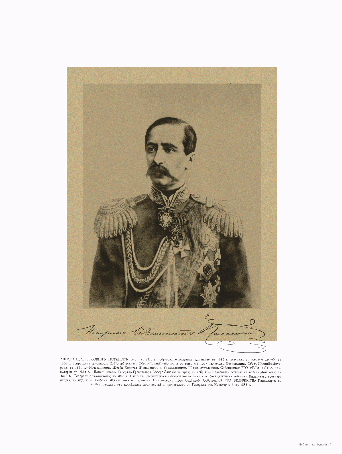 Шеф Жандармов Александр Львович Потапов, 1818-1886.