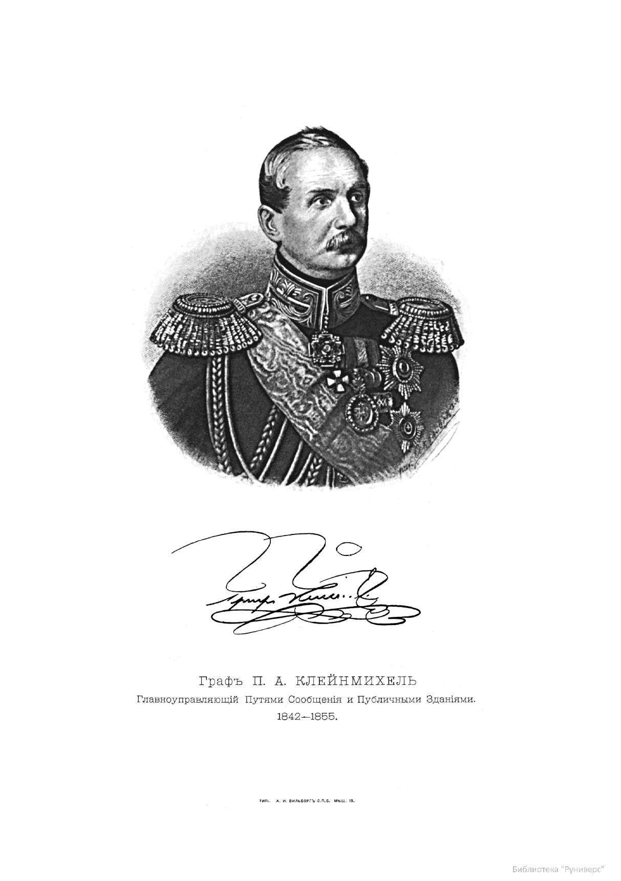 Граф П.А.Клейнмихель, Главноуправляющий Путями Сообщения и Публичными Зданиями 1842-1855.