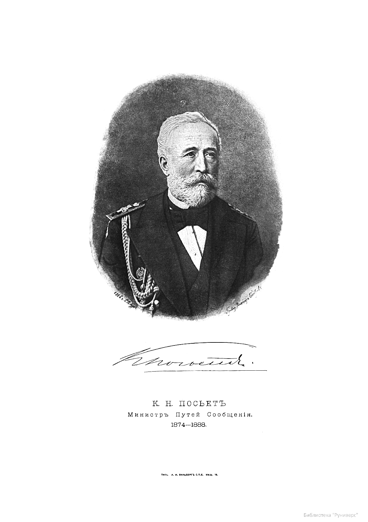 К.Н.Посьет, Министр Путей Сообщения 1874-1888.