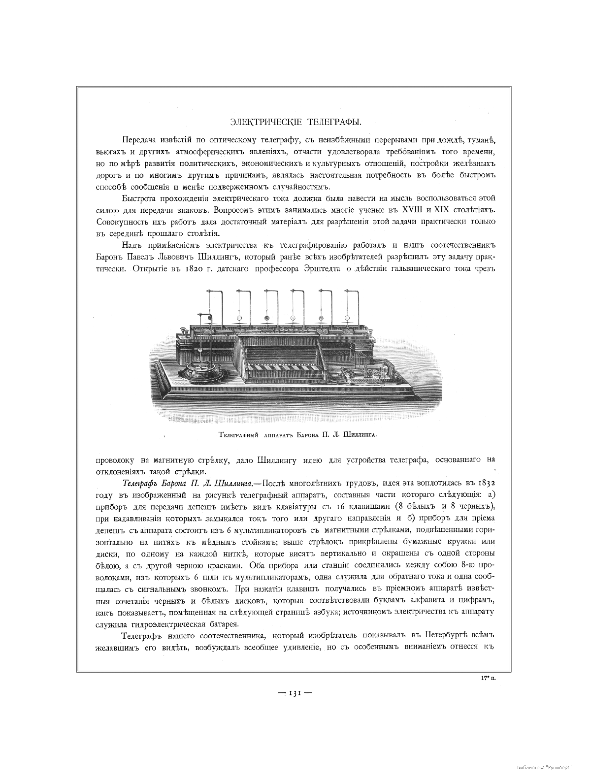 Телеграфный аппарат Барона П.Л.Шиллинга.