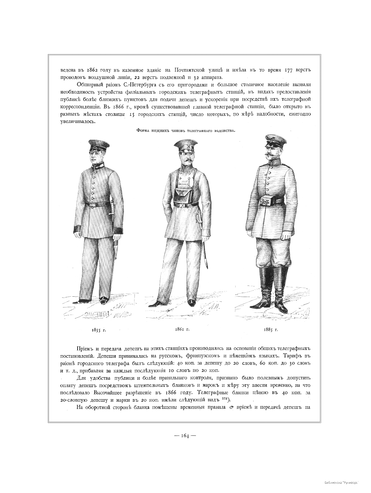 Форма нижних чинов телеграфного ведомства 1855, 1861 и 1885 гг.