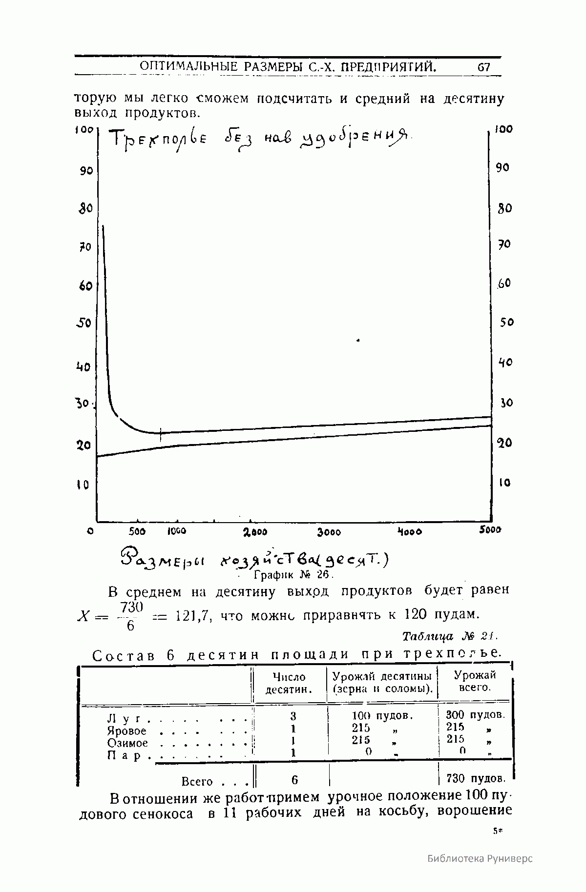 График №26. Определение оптимального размера хозяйства зернового трехпольного полеводства без применения навозного удобрения.