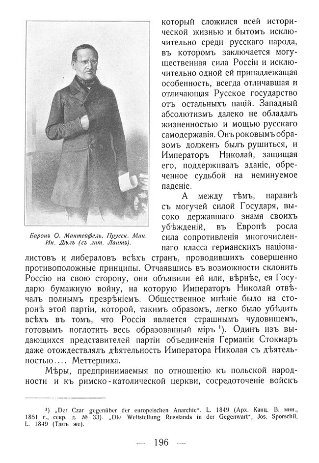 Барон О.Мантейфель, Прусский Министр Иностранных Дел.
