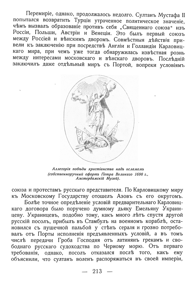 Аллегория победы христианства над исламом (собственноручный офорт Петра Великого 1698)