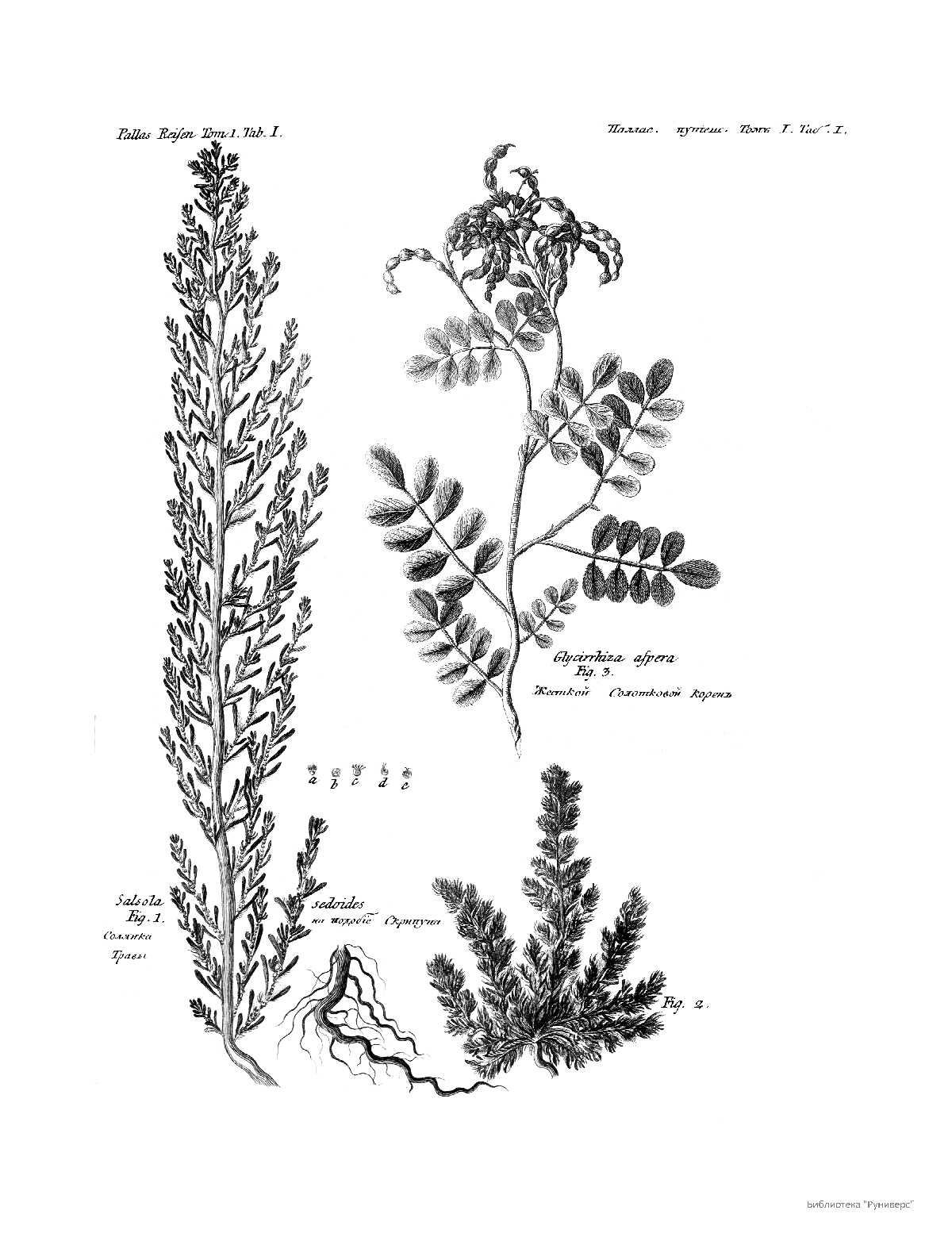 Том I. Таб.I. Солянка на подобие Скрипуна Травы. Жесткий Солотковый корень.