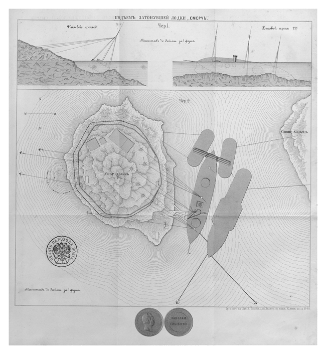 Схемы подъема затонувшей лодки "Смерч"