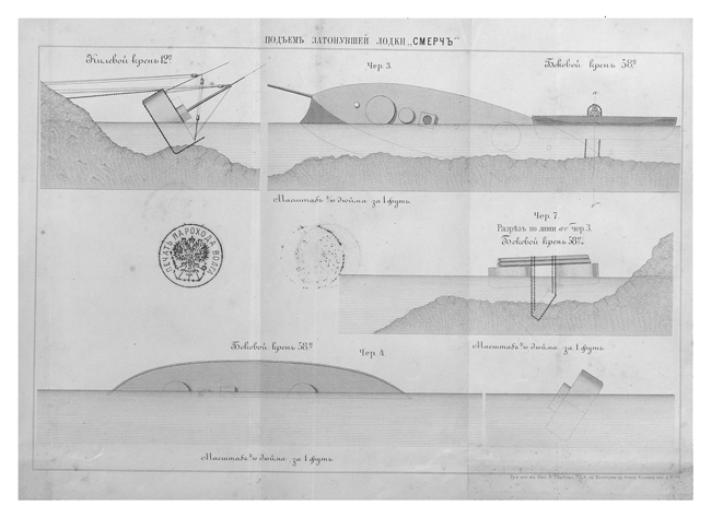 Схемы подъема затонувшей лодки "Смерч"