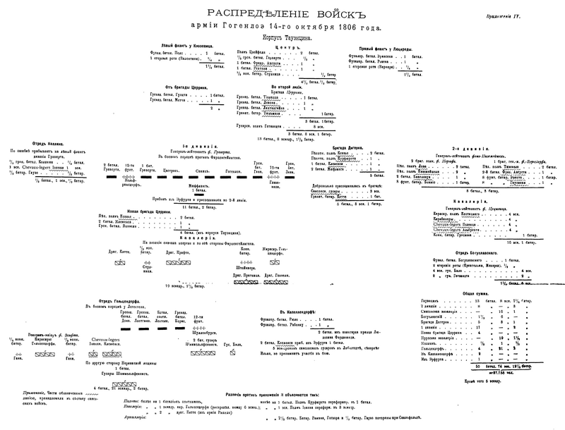 Распределение войск армии Гогенлоэ 14-го октября 1806 года.