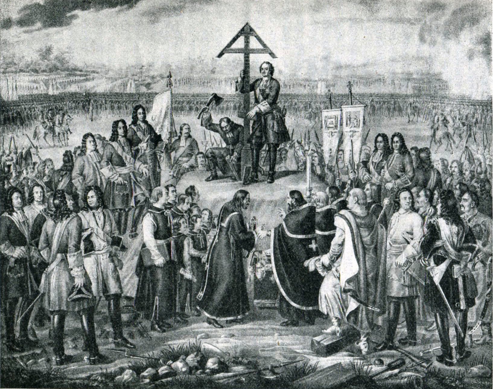 Петр I водружает крест на месте погребения павших воинов