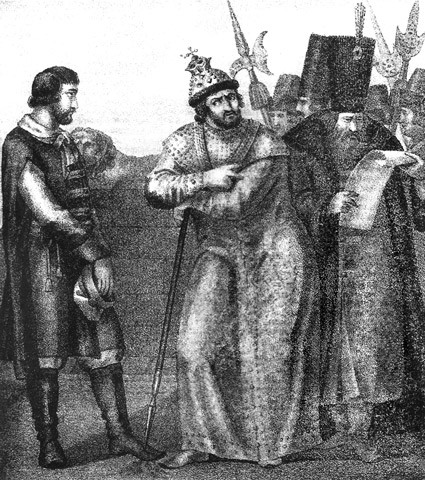 Иван Грозный выслушивает письмо от Андрея Курбского. Б. Чориков. 1836 год