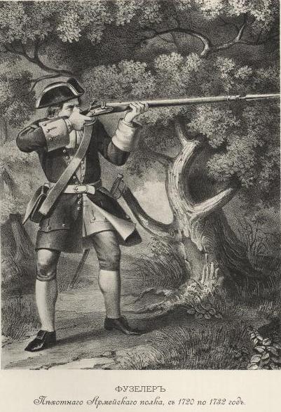Рядовой армейского пехотного полка в 1720—32 гг. Литография XIX века/div> «Петр Великий крепко привязал дворянство к бессрочной государственной службе и в государственных видах стеснил дворянское землевладение условиями закона о единонаследии 1714 г. Посл