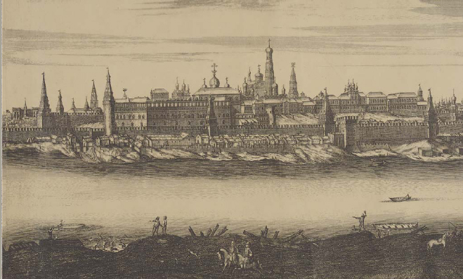 Панорама города Москвы. Офорт П.Пикара, И.Бликланда. 1708-1708 гг
