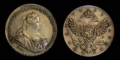 Серебряный рубль с портретом Анны Иоанновны. 1739 год