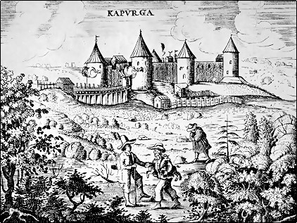 Крепость Копорье. Гравюра из "Путешествия" Адама Олеария