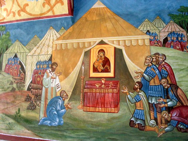Основание Донского монастыря. Фрагмент росписи собора монастыря