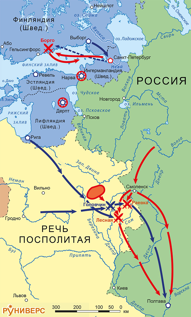 Северная война 1700-1721. Карта кампании 1708 г.