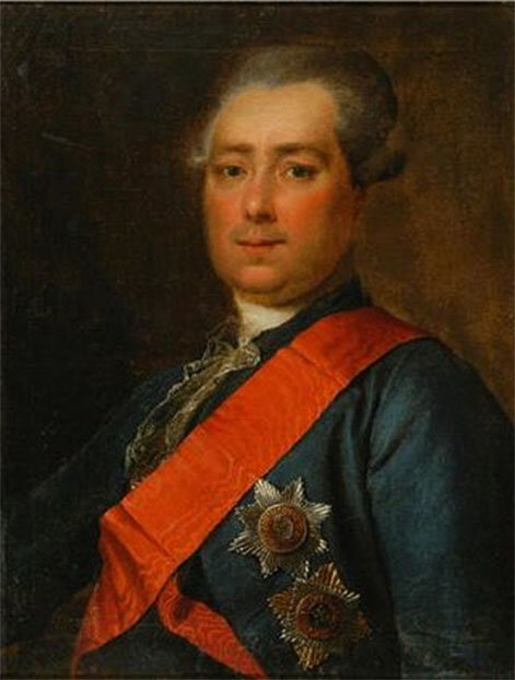 Поясное изображение мужчины средних лет, поворот фигуры – три четверти влево, взгляд – на зрителя. Одет в тёмно-синий кафтан с кружевным жабо. Слева на груди – звёзды орденов Александра Невского и Св. Владимира. Под кафтаном через правое плечо – лента ордена Св. Владимира. Через левое плечо – лента ордена А. Невского. Портрет иконографически близок работе Д.Г. Левицкого из серии портретов кавалеров ордена Св. Владимира";s:4:"TYPE";s:4:"html";}