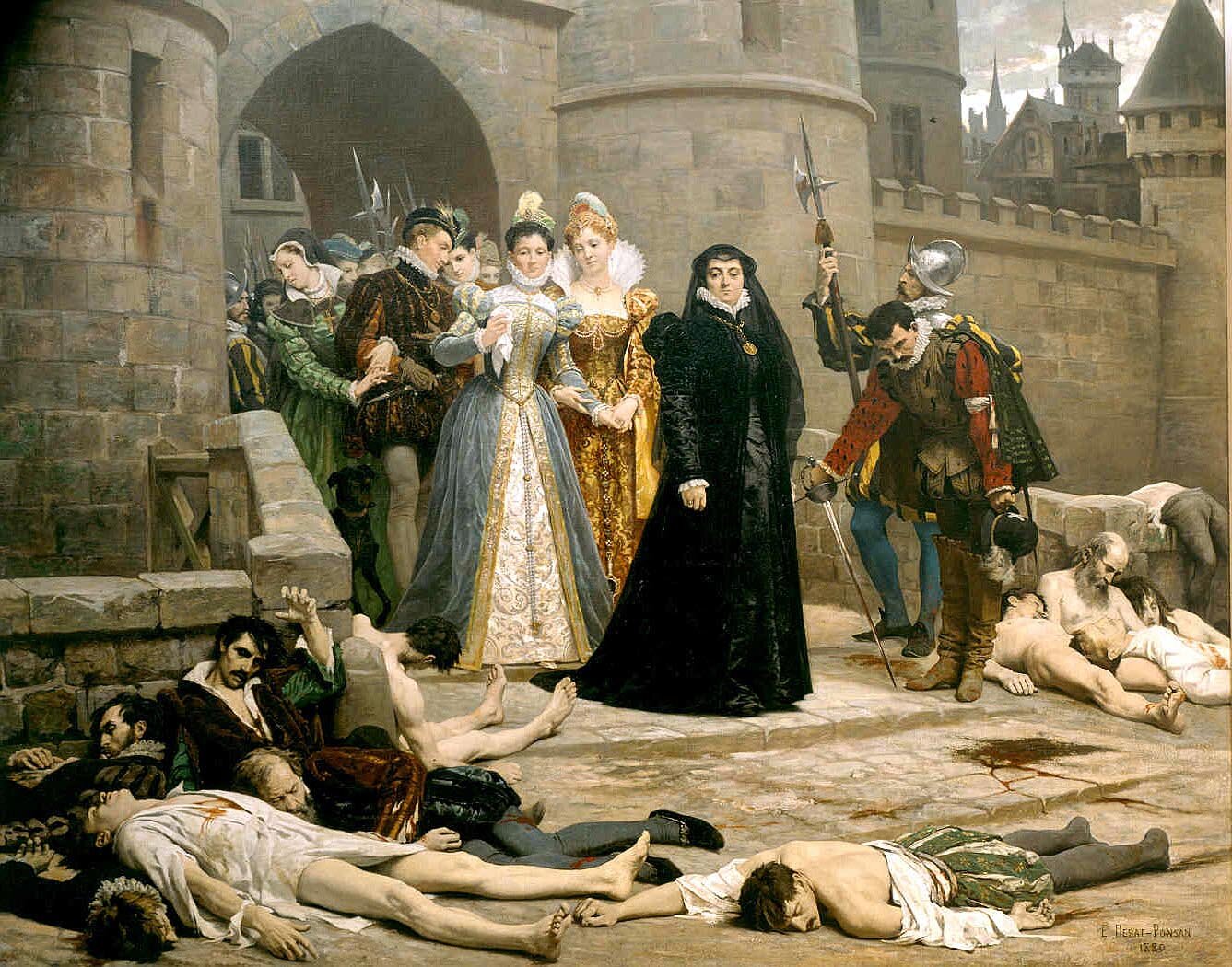 Екатерина Медичи осматривает последствия резни в Варфоломеевскую ночь, устроенной по ее наущению католиками в ночь на 24 августа 1572 года.