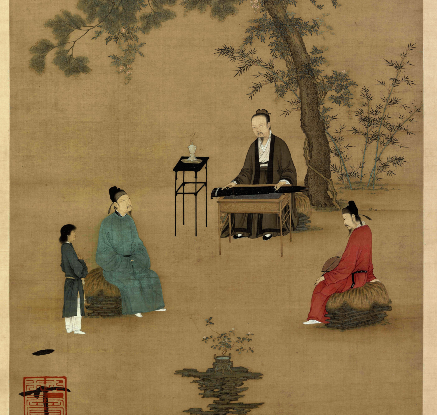 Фрагмент картины Хуэй-цзуна "Игра на гуцине" (聽琴圖).