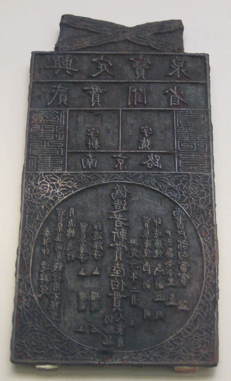 Бронзовое клише для печати цзиньских банкнот, 1218 г.