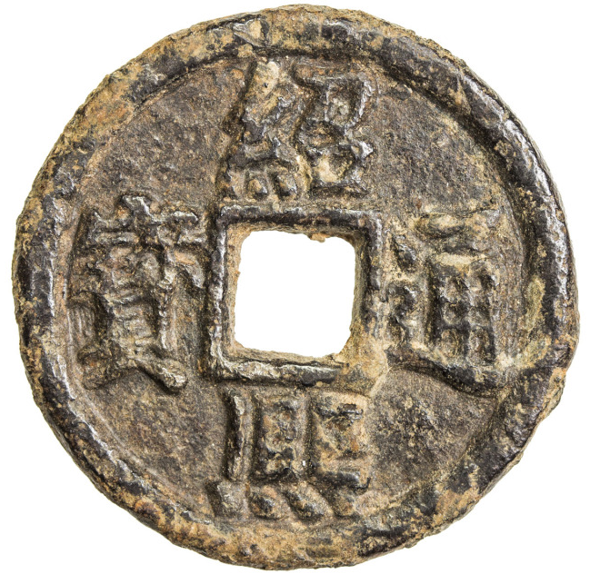 Железные 2 вэнь Гуан-цзуна Shàoxī tōngbǎo ( 紹熙通寶), 1193 г. (третий год эры 紹熙 ) монетный двор в Ханьяне, провинция Хубэй. Эстимейт - 100 долларов.