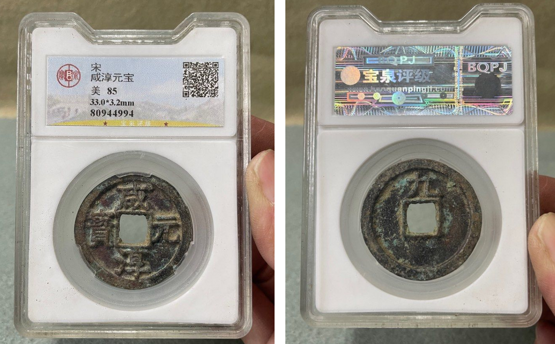 Довольно интересный тайваньский слаб с последней официальной монетой Южной Сун - Xián chún yuánbǎo (咸淳元寶) Ду-цзуна