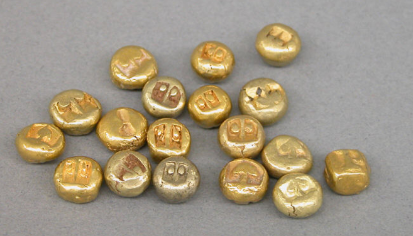 Яванские золотые прото-монетки в 1 masa весом (около 2,4 гр), примерно 700 год.