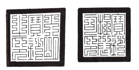 Слева — печать Бумажное сокровище Великой Мин, справа — печать Управления по надзору за бумажными деньгами, на банкноты ставились обе.