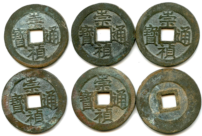 Образцовая монета янцянь последнего минского императора Чунчженя (崇禎帝) — Chóngzhēn tōngbǎo (崇禎通寶, 1628–1644 гг.).