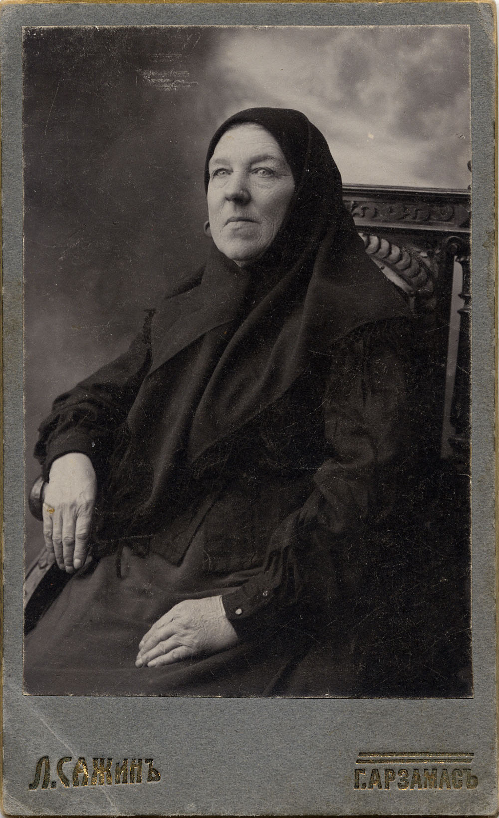 Фотограф Л.Н. Сажин, Арзамас. Портрет Анисьи Крюковой. 1910-е г.