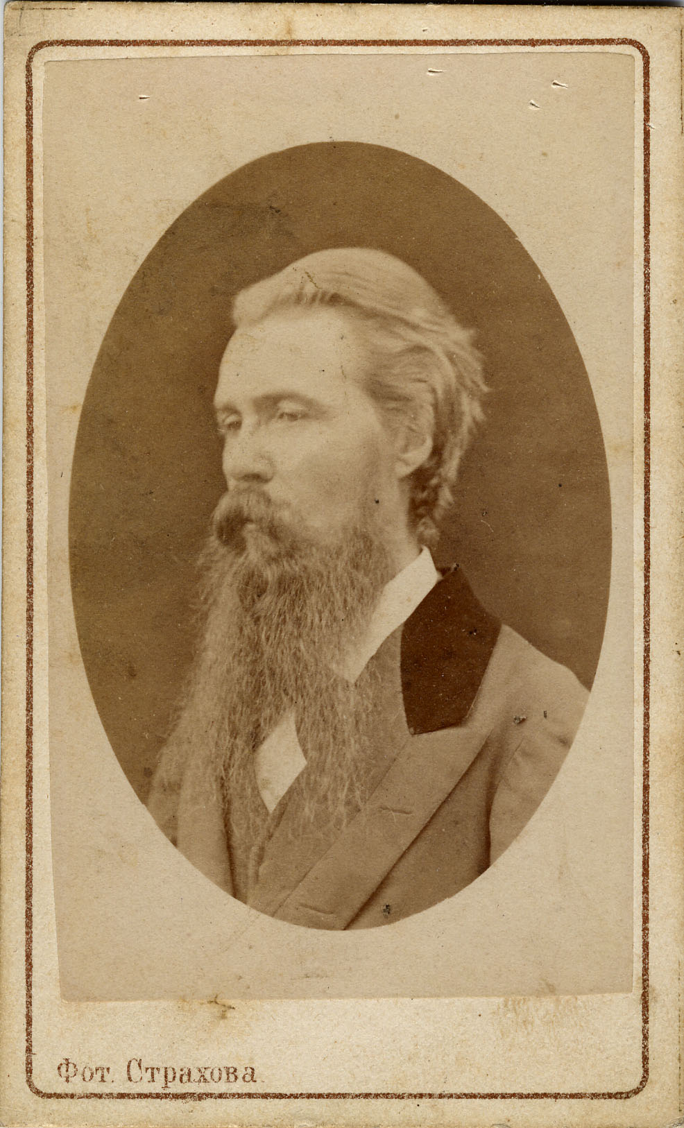 Портрет Александра Ростоцкого. На обороте надпись: “Дорогому и незабвенному Папаше на добрую память от Сына Александра Ростоцкого. 10 апреля 1896 года”. Москва.