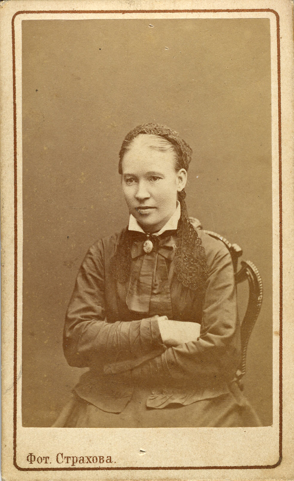«Фот. Страхова». Портрет женщины в черном кружевном головном уборе. 1890-е г.