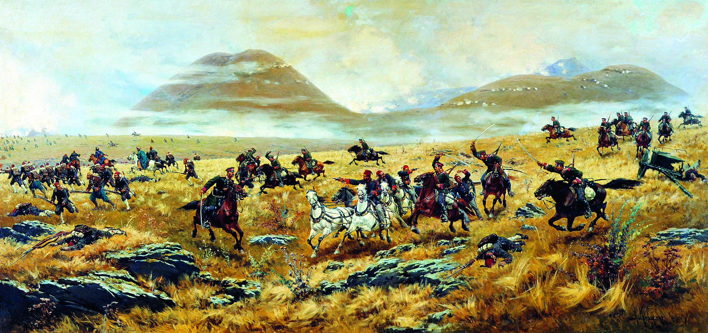 Нижегородские драгуны, преследующие турок по дороге к Карсу во время Аладжинского сражения 3 октября 1877 г.