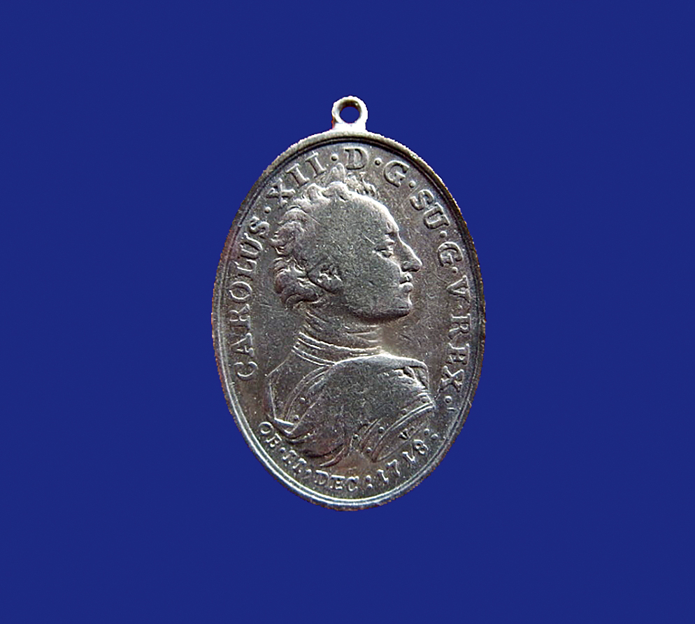 Памятная медаль в честь Карла XII, 1718 г. (аверс)