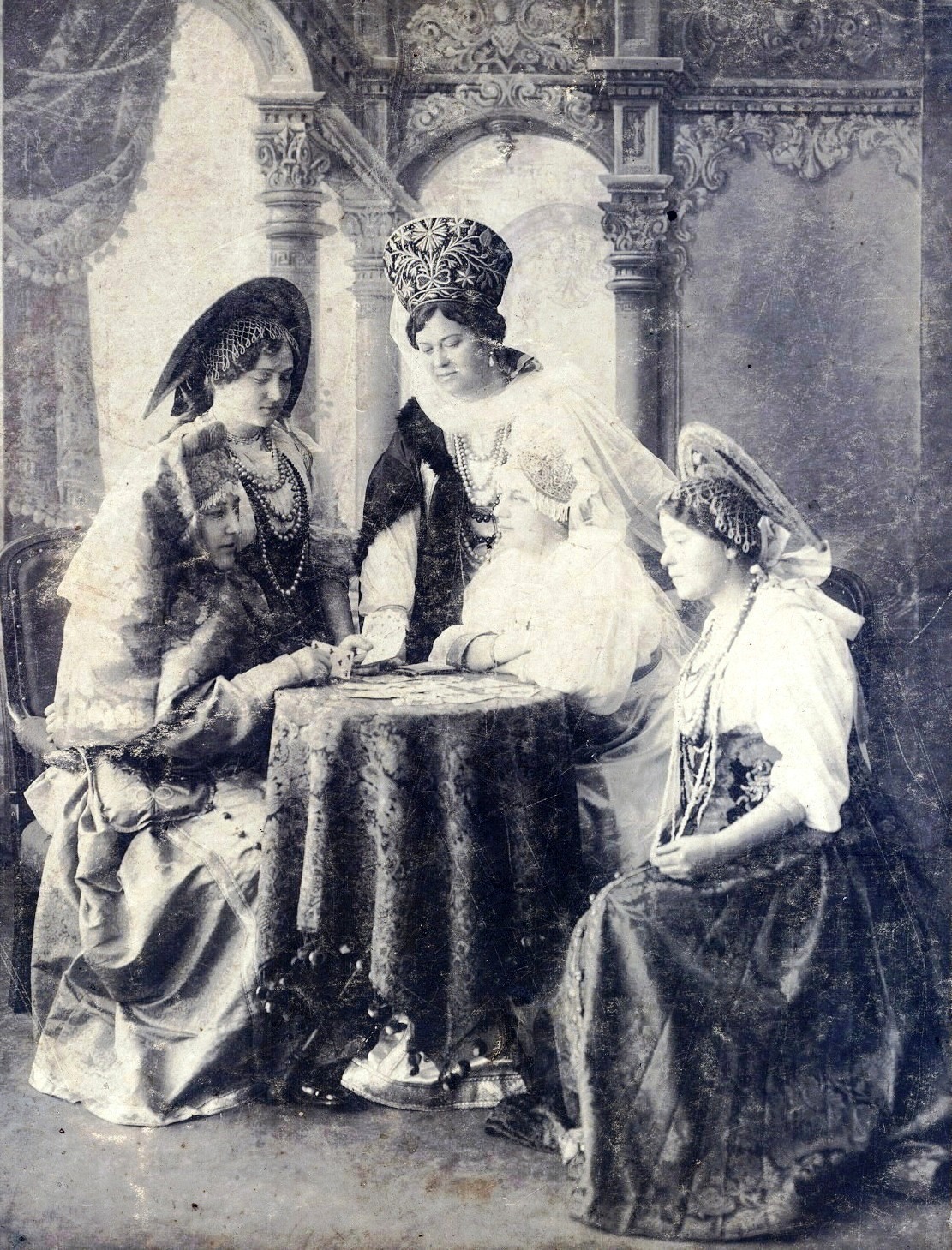 Неизвестный фотограф. В русских костюмах. Справа стоит Надежда Ивановна Гундобина. Муром. 1906 – 1907. Частное собрание (архив Казанковых).