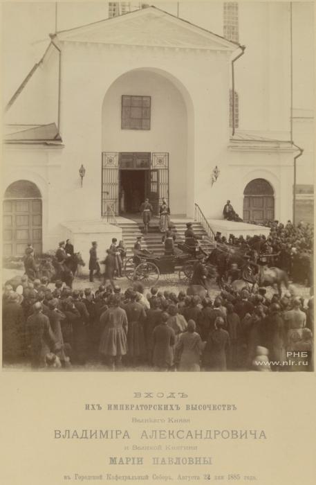 Вход Их Императорских высочеств вел. кн. Владимира Александровича и вел. кн. Марии Павловны в городской кафедральный собор 2 августа 1885 года