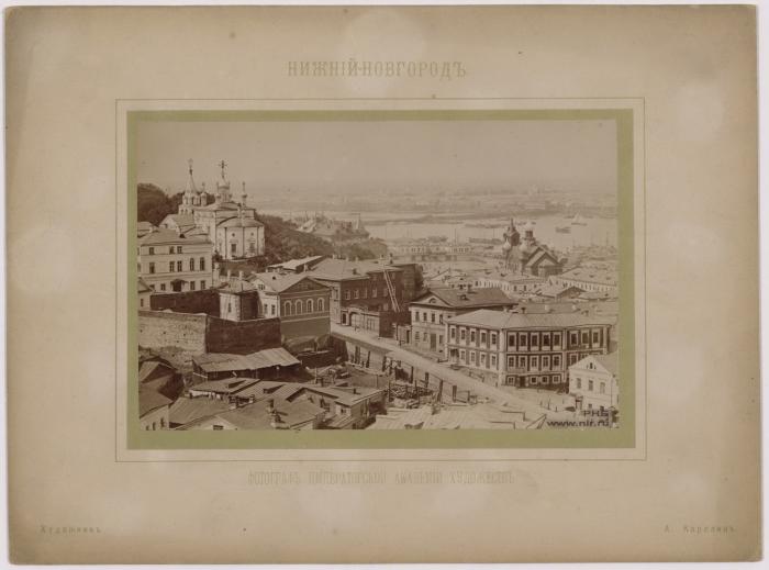 Вид на Похвалинский съезд, Нижний базар и рейд реки Волги. Нижний Новгород.