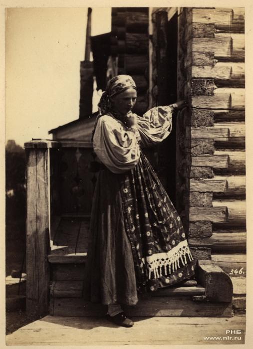 Мордовская девушка у крыльца.