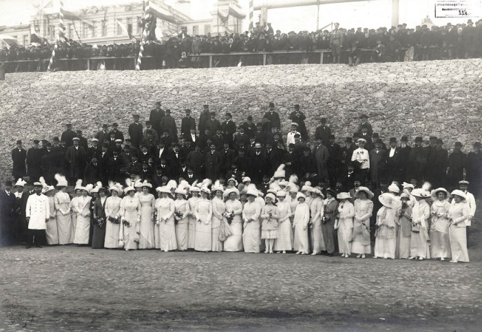 Встреча Императора Николая II. Группа дворянства и купечества у пристани. Нижний Новгород.